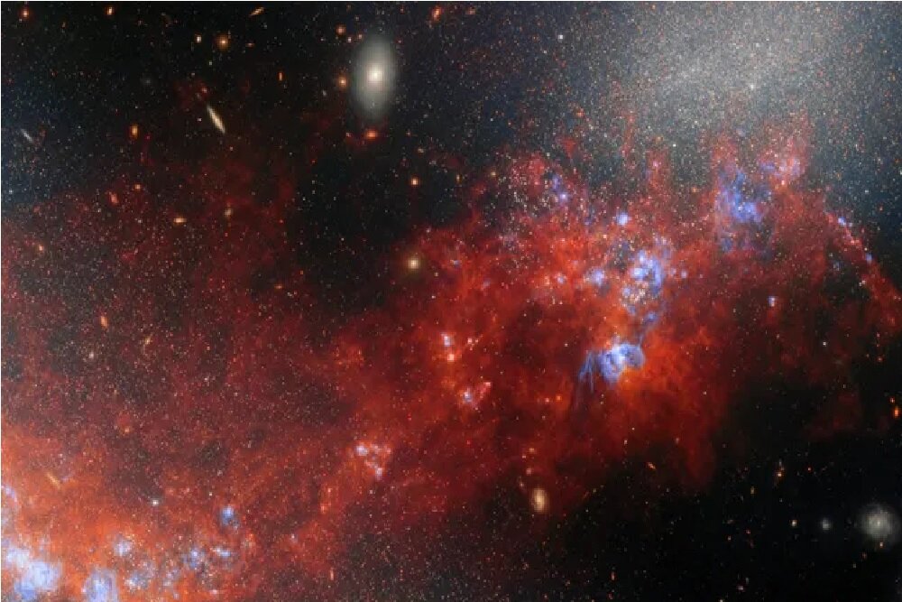 به نقل از اسپیس، این نمای فروسرخ، واضحترین نگاه تاکنون به چگونگی ادغام، تکامل، تبادل گاز و شعلهور شدن امواج ستارگان جدید توسط کهکشانهای کوتوله را ارائه میدهد.